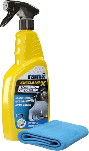 Rain-X Ceramic Car Coating Spray; High Gloss Car Wax with Hydrophobic and UV Protection; Protects for 3 Months + Cloth- 750ml