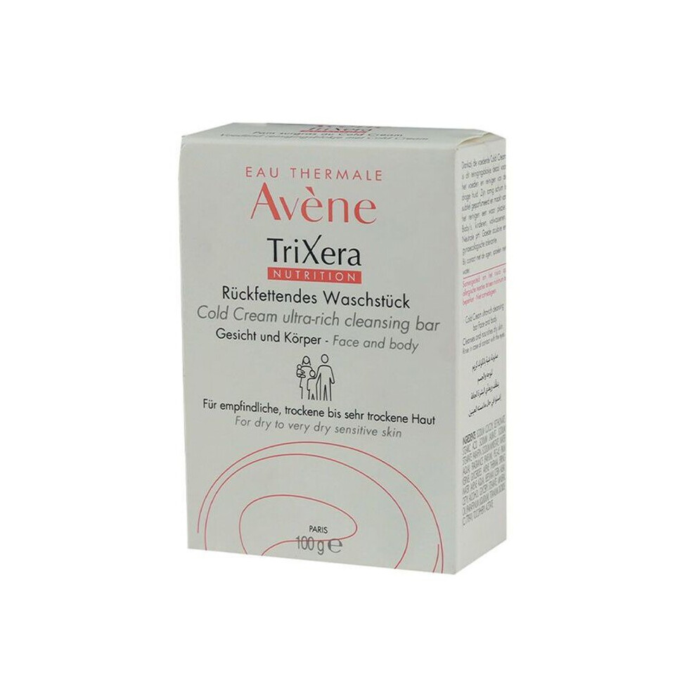 Avene Trixera Nutrition Nutri-Fluid Cleansing Bar | Soap-Free Gentle Cleanser for Dry & Sensitive Skin 100g