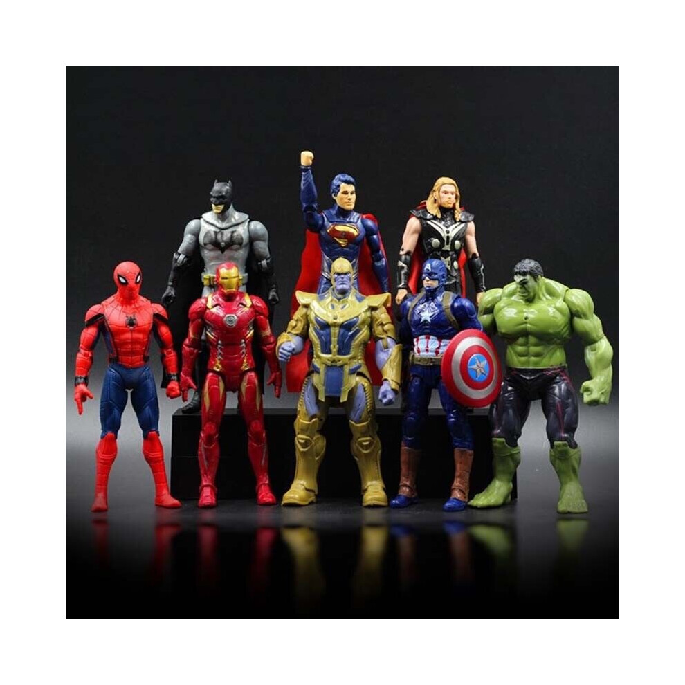 (Spiderman) 8pcs Avengers Thanos Bat Iron Men Captain America Thor Hulk Figures Set Toy