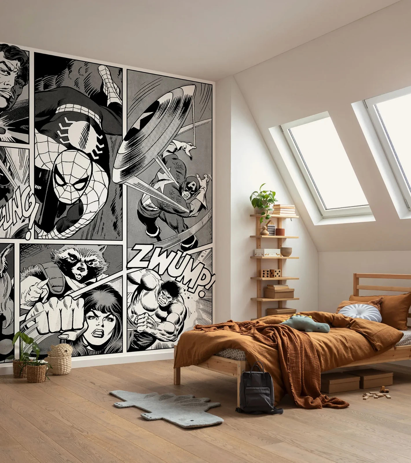 Marvel Comics Vinyl Wallpaper 212 x 250 cm children bedroom Avengers Black White