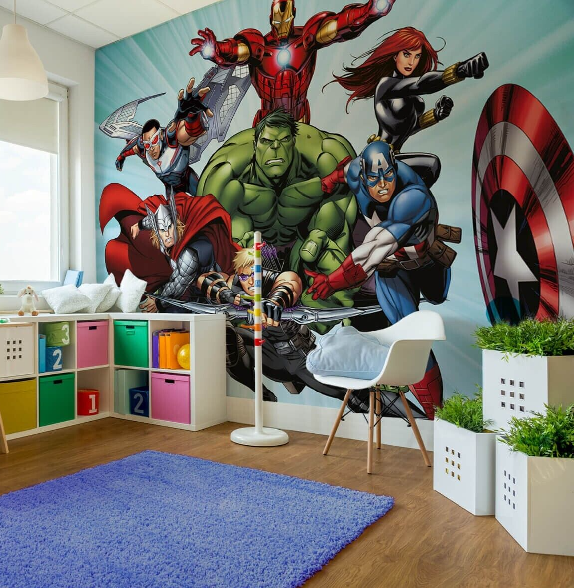 Kids bedroom Avengers wallpaper Marvel Thor IronMan Black Widow Captain America