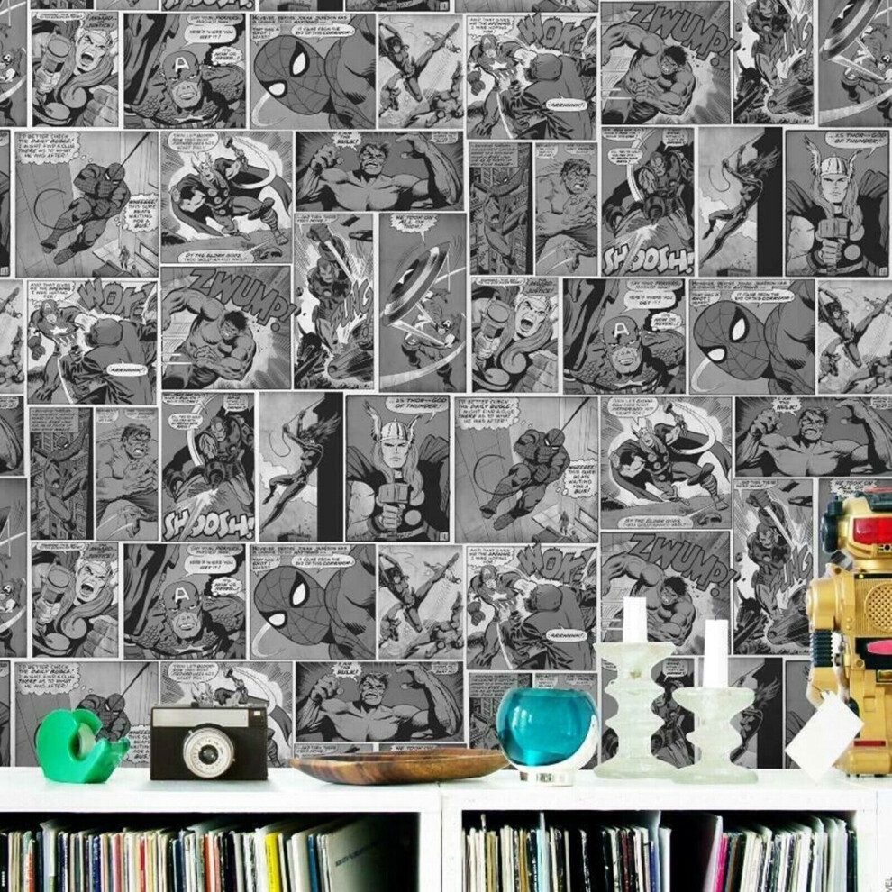 (159502 Black And White) Muriva Marvel Avengers Comic Book Strip Heroes Wallpaper Thor Hulk Spiderman