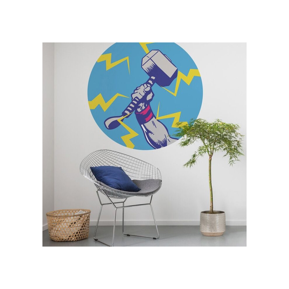 Round adhesive panoramic wallpaper - Sanders & Sanders - The Avengers - Ø 128 cm - Blue and Yellow - Non-woven