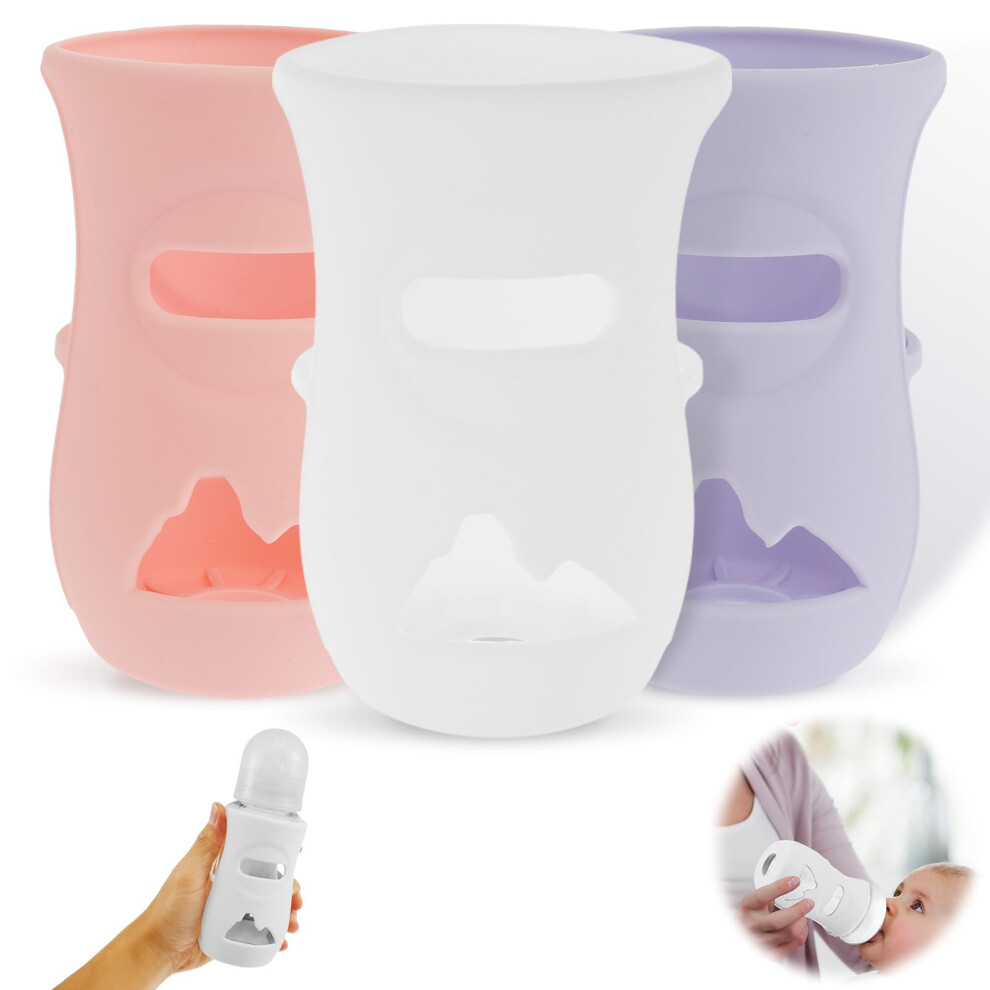MINMUNJIU 3 Pack Silicone Sleeves for Philips Avent Natural Glass Baby Bottles Anti Breakage Baby Bottle Holder with Handle for Baby Girls Compatib