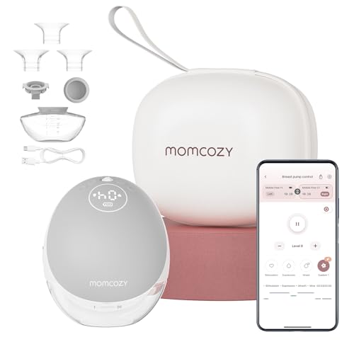 Momcozy Hands Free Breast Pump Mobile Flow | M9 Upgrade, Electric & App Control, Personalized Multi-Modes & 15 Levels, Wearable Pump Breastfeeding, 24mm (Cozy Gray, 1 Count)