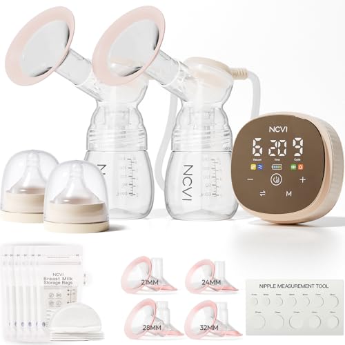 NCVI Electric Breast Pump 8128, Double Breast Milk Pump 4 Modes 9 Levels, Rechargeable Breastfeeding Pump with LED Display, Anti-Backflow, 21/24mm Flanges