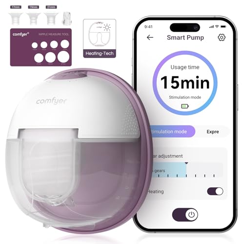 Electric Portable Hands-Free Breast Pump for Baby Mouth, Sealed Flange with 3 Types 17, 19, 21 mm and 9 Levels, Heat Compress, Magnetic Charging, App Control