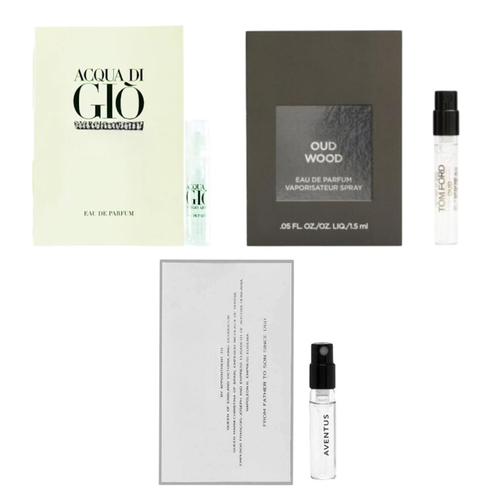 In1mart Set 3 Cologne Luxury Travel Size for Men Sample Spray Vial. Oud Wood/Aventus EDP/Acqua