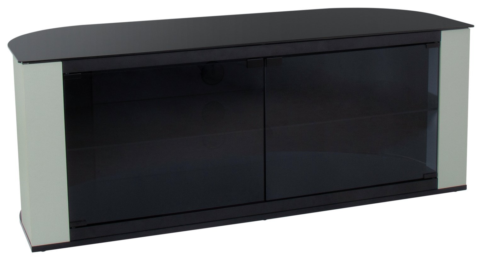 AVF Curved Wood TV Stand - Burghley Affinity 1500mm Floorstand Unit Upto 70" & 65Kg Max TV Weight, Gloss White With Black Glass, Open & Closed Storage