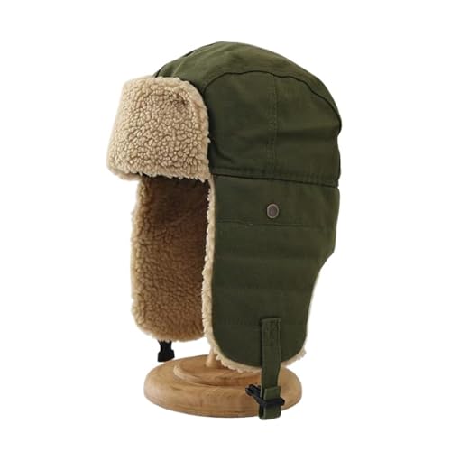KIFSDLF Unisex Winter Hats with Ear Flaps Cotton Trapper Hat Aviator Windproof Ski Cap Buckle for Outdoor Skiing Skating(Green)
