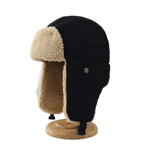 KIFSDLF Unisex Winter Hats with Ear Flaps Cotton Trapper Hat Aviator Windproof Ski Cap Buckle for Outdoor Skiing Skating(Black)