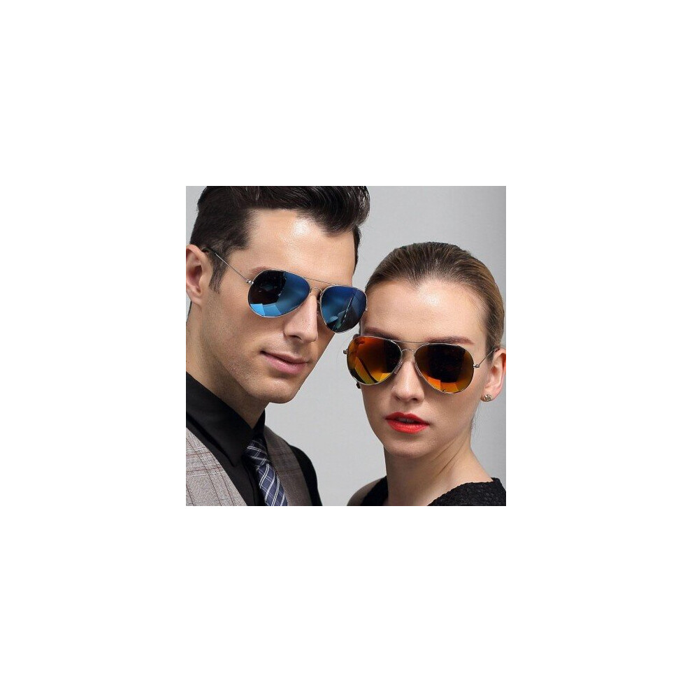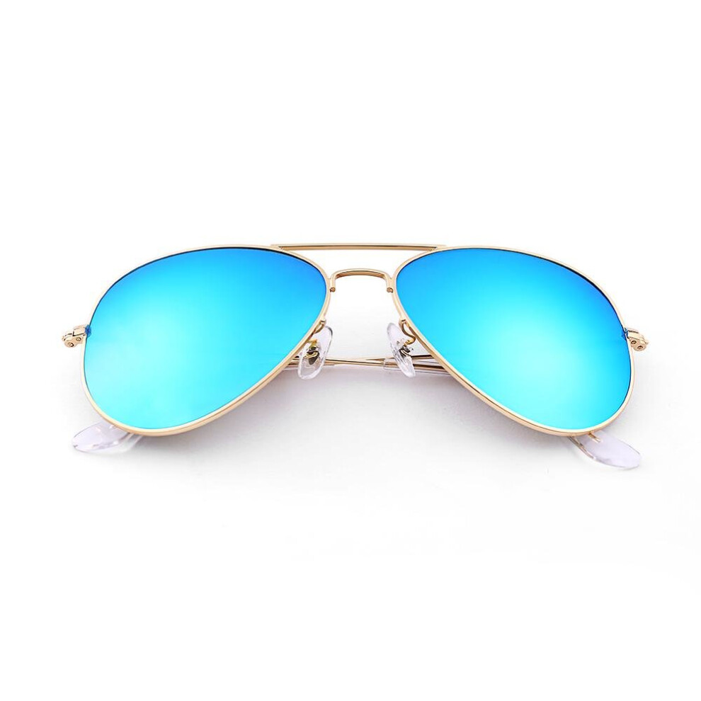 (blue) Mirrored Metal Aviator Sunglasses With Full Mirror Coating