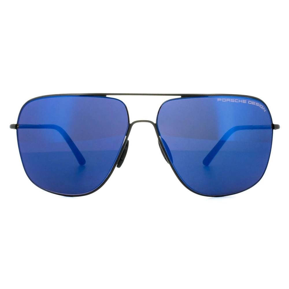 Porsche Design Men Aviator Mens Black Dark Blue Mirror Sunglasses