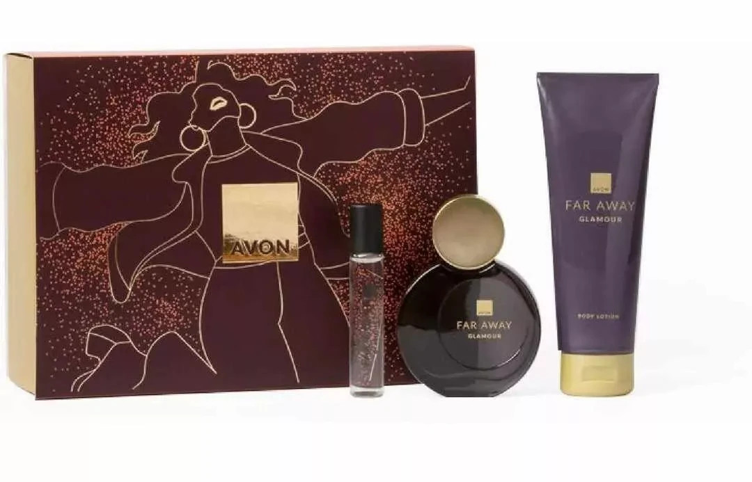 Avon Far Away Glamour Perfume 50ml EDP Eau De Parfum Set+Purse Spray+Body Lotion