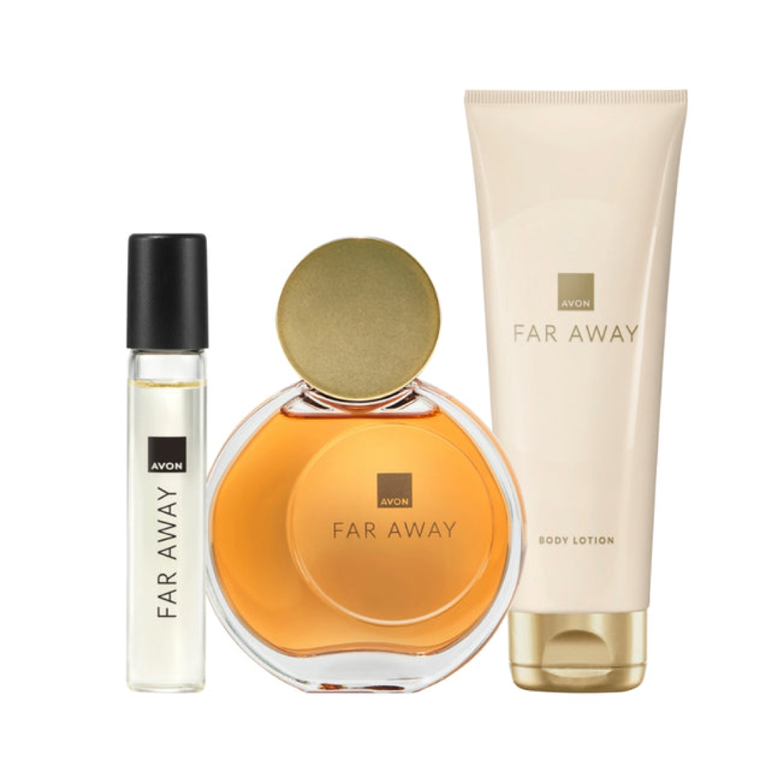 Avon Far Away Original for Her Three Piece Gift Set with Eau de Parfum 50ml, Body Souffle 75ml and Purse Spray 10ml in a Gift Box, Oriental and Floral Scent Notes, Long Lasting Formula, Cruelty Free