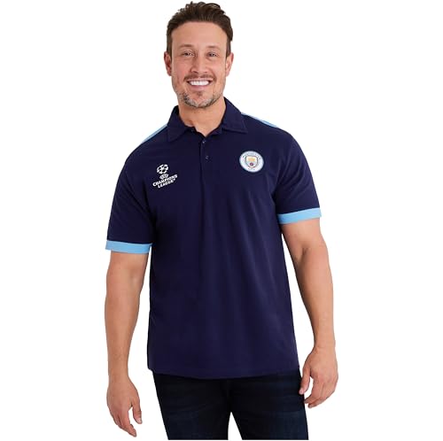 Manchester City F.C. Mens Polo Shirt, Short Sleeve Collared T-Shirt Buttoned (L, Navy/Blue)