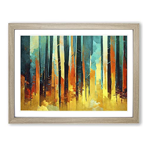 Awesome Abstract Forest Vol.1 H1022 Framed Print for Living Room Bedroom Home Office Décor, Wall Art Picture Ready to Hang, Oak A4 Frame (34 x 25 cm)