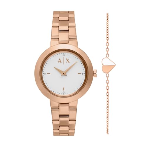 Armani Exchange Women's 36MM Rose-Gold Tone Stainless Steel Watch, AX7175SET