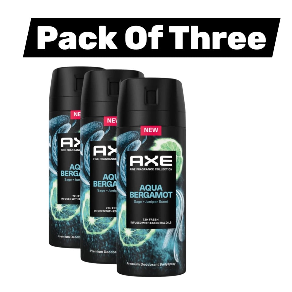 3 x 150ml AXE Fine Fragrance Aqua Bergamot Body Spray Deodorant
