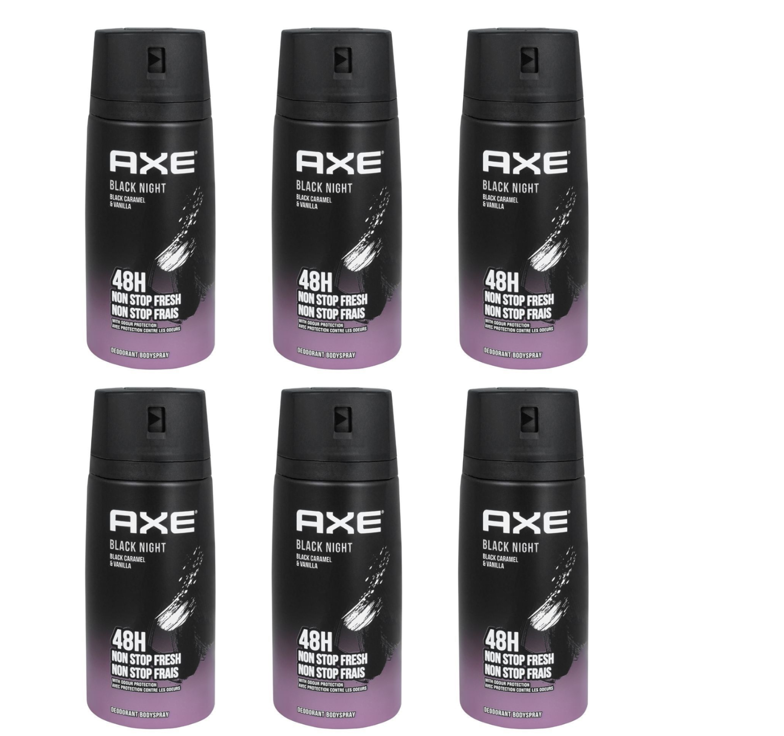 6 x 150ml Axe Black Night Deodorant Body Spray Black Carmel & Vanilla