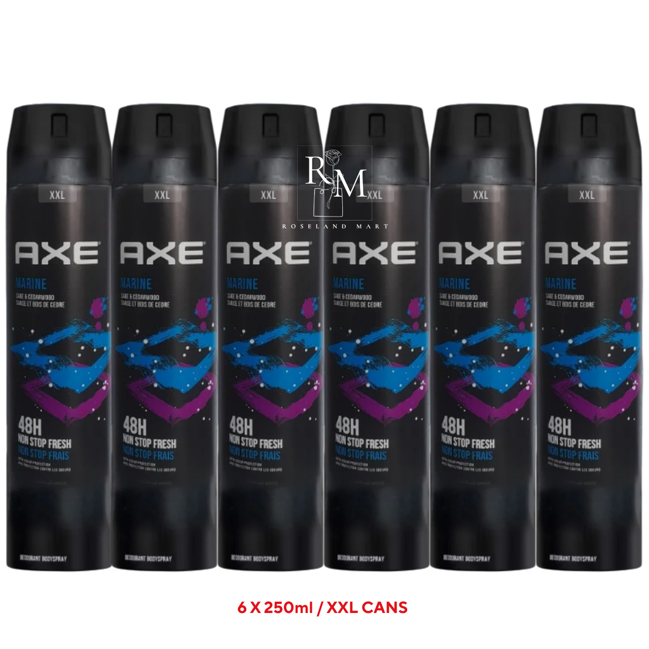 6 x 250ml XXL AXE / LYNX MARINE MENS Deodorant Body Spray FREE POST UK