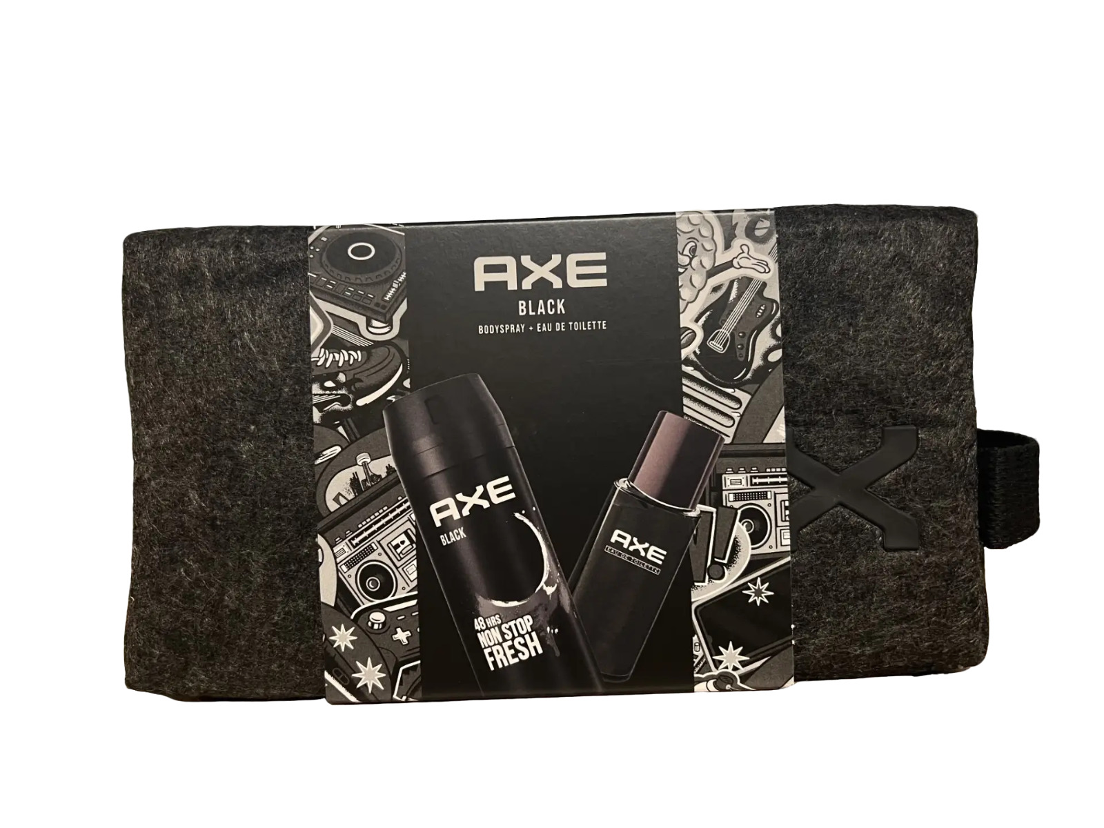 Axe Black 3pc Gift Set 75ml Eau de Toilette Spray 150ml Deodorant Spray & Bag
