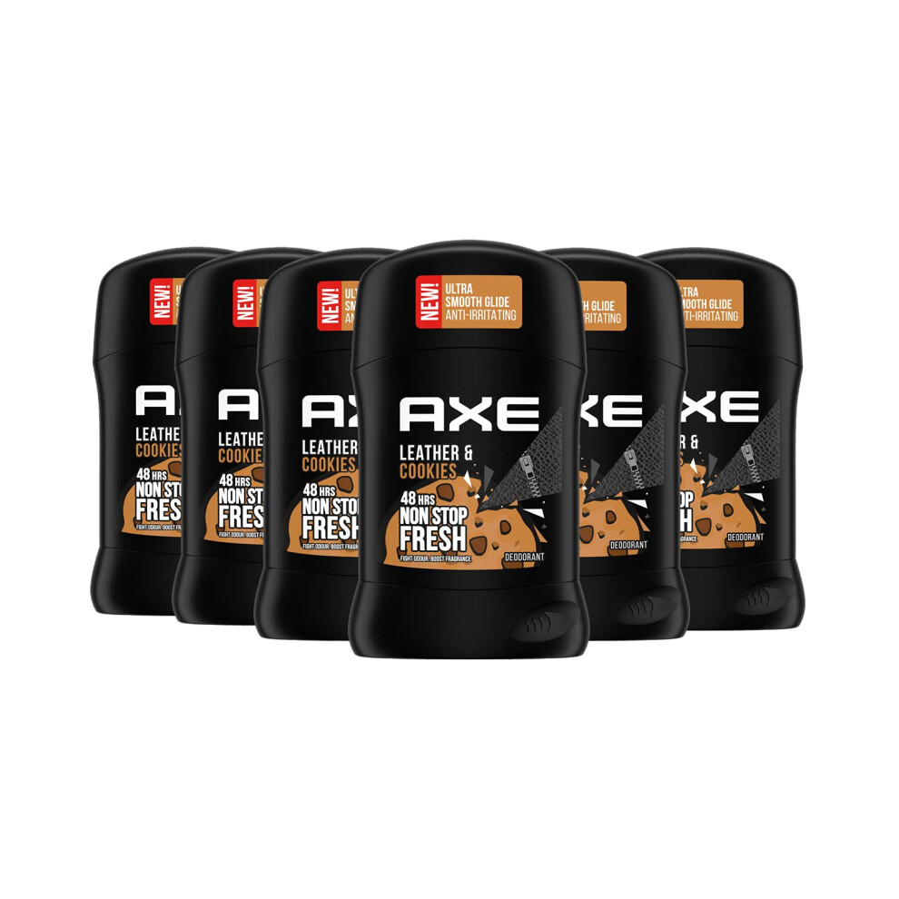 Axe Deodorant Stick Leather & Cookies Deodorant without Aluminium with Long-Lasting Fragrance, Pack of 6 x 50 ml