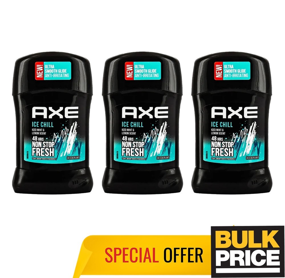 Axe Ice Chill Stick Deodorant 48H Freshness Sweat Odor Protect Mint Lemon 3-Pack
