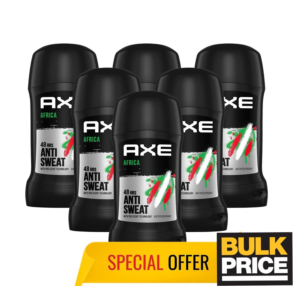 Axe Africa Stick Deodorant 48H Powerful Sweat & Odor Protection 50ml Bulk 6-Pack