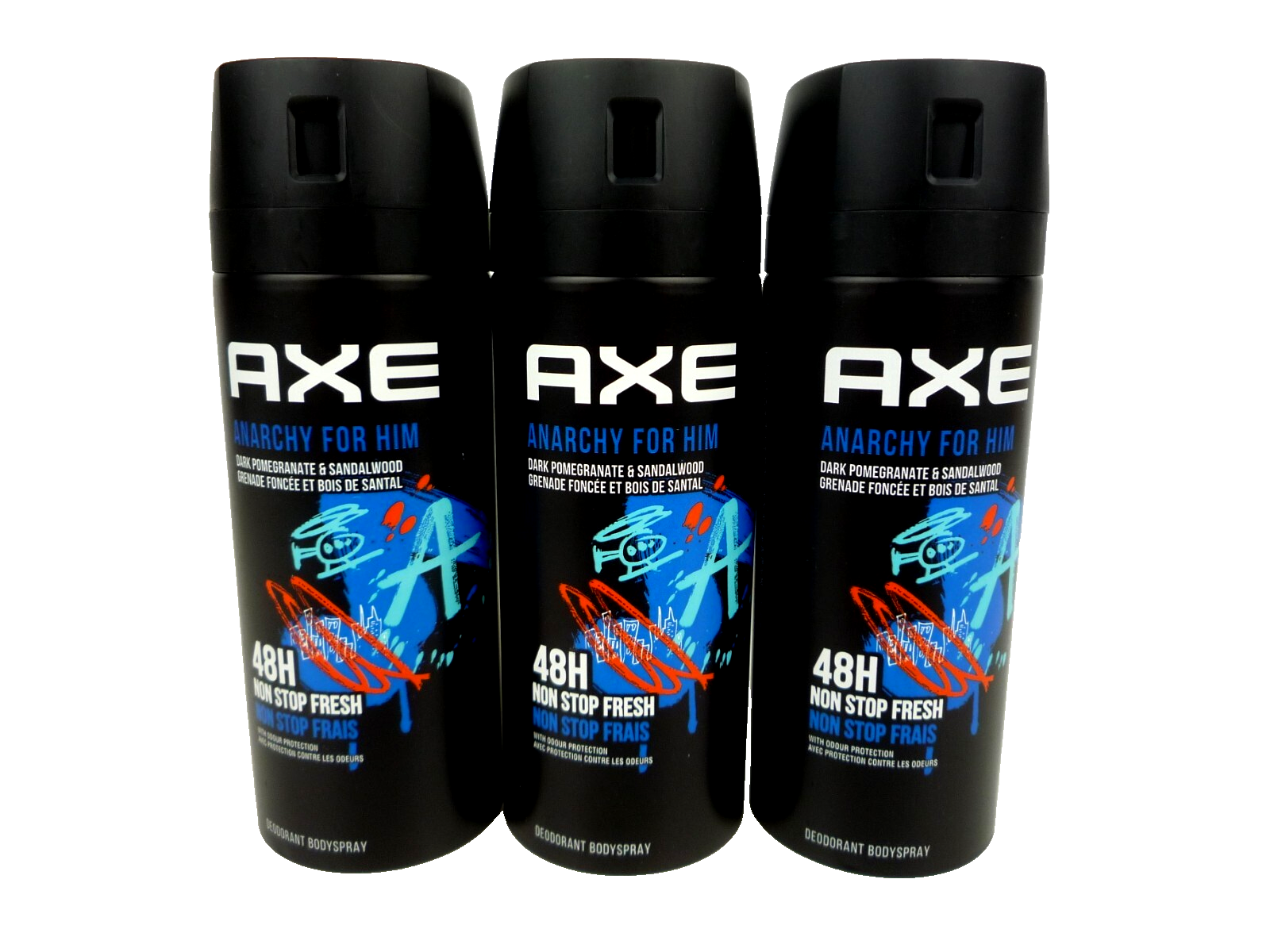 3 AXE ANARCHY FOR HIM 150ml DEODORANT 48HR NON STOP FRESH NEW