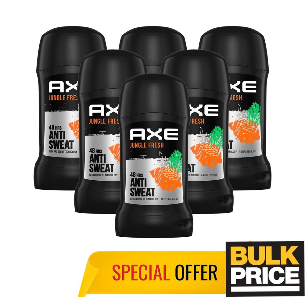 Axe Jungle Fresh Stick Deodorant 48H Sweat Odor Protection Pro Scent 50ml 6-Pack