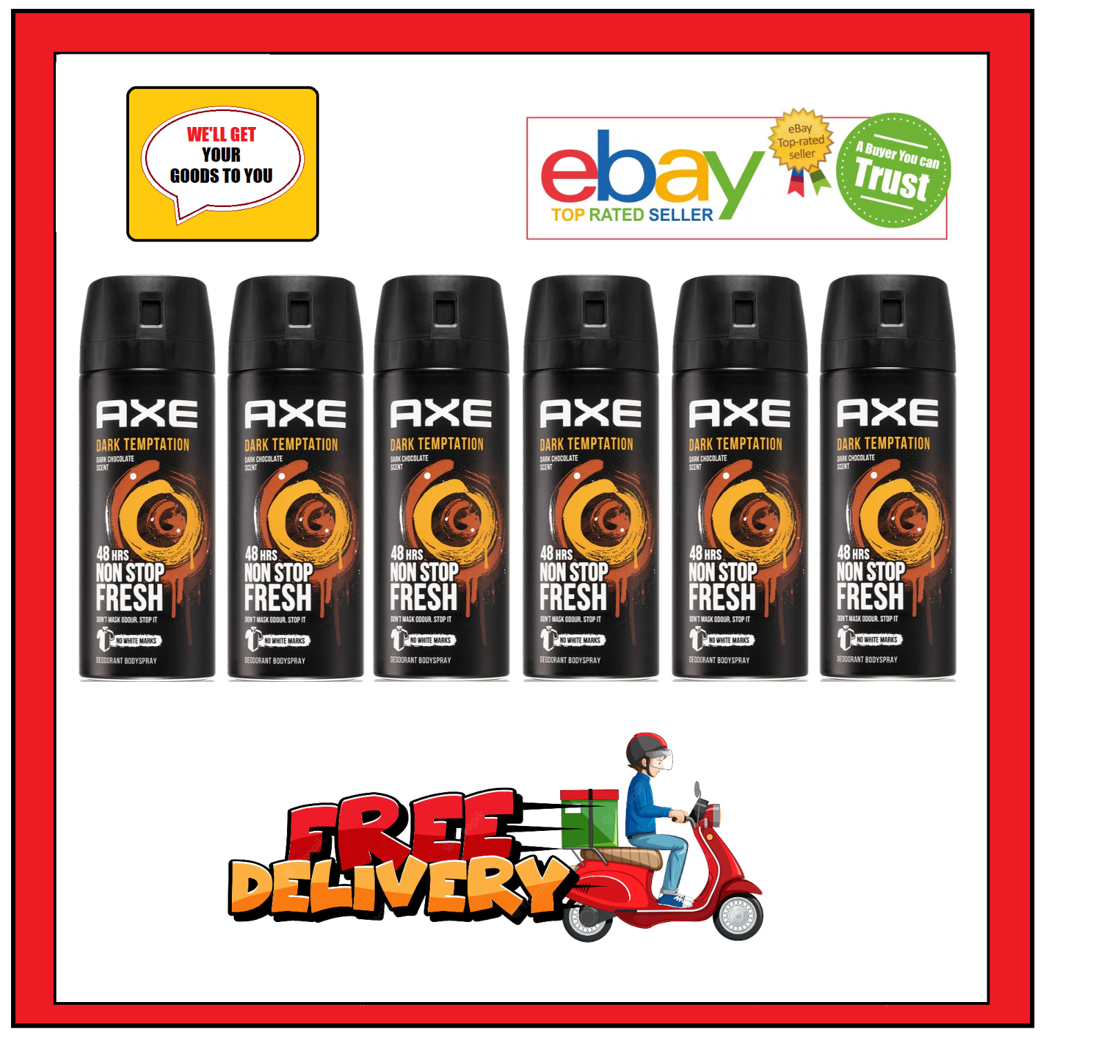 6 x 150ml Axe Dark Temptation Deodorant Bodyspray. Dark Chocolate
