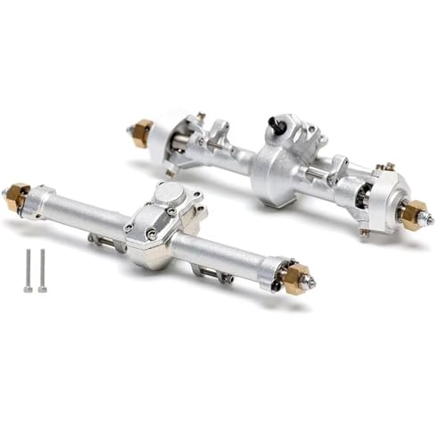 XAQRYQO RC Car Axle Set For Axial For SCX24 90081 C10 B-17 1967 For Wrangler 1/24 rc Car Aluminum Alloy Complete Edition Front Rear Axle Set(Silver,Front)