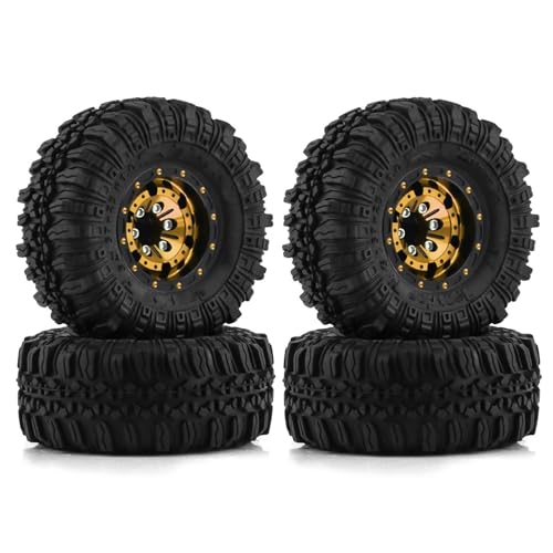 RC Tires Tyres Wheels Compatible With Axial For SCX24 AX24 For TRX4M For FCX24 1/18 1/24 RC Crawler Parts 57mm Metal 1.0" Beadlock Wheel Rim Rubber Tire Set(Yellow,B)