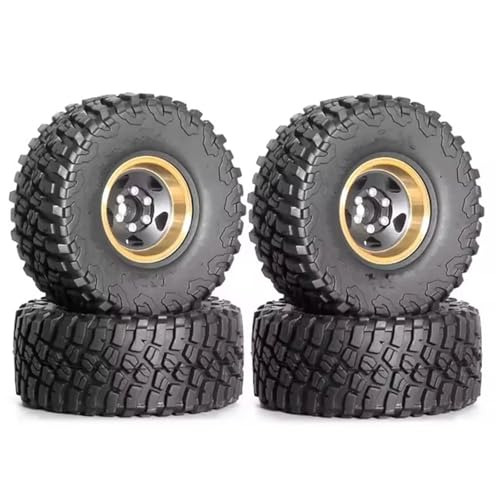 RC Tires Tyres Wheels Compatible With Axial For AX24 For SCX24 For TRX4M 1/18 1/24 RC Crawler Car Part Black Coating Brass 1.0" Beadlock Wheel Tires Set(B)