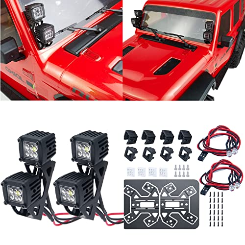 KLHYTGFA Metal Front Bumper with Lights for 1/24 RC Crawler Car Axial SCX24 Jeep Wrangler JLU Deadbolt Upgrade Parts(Front Bumper B)
