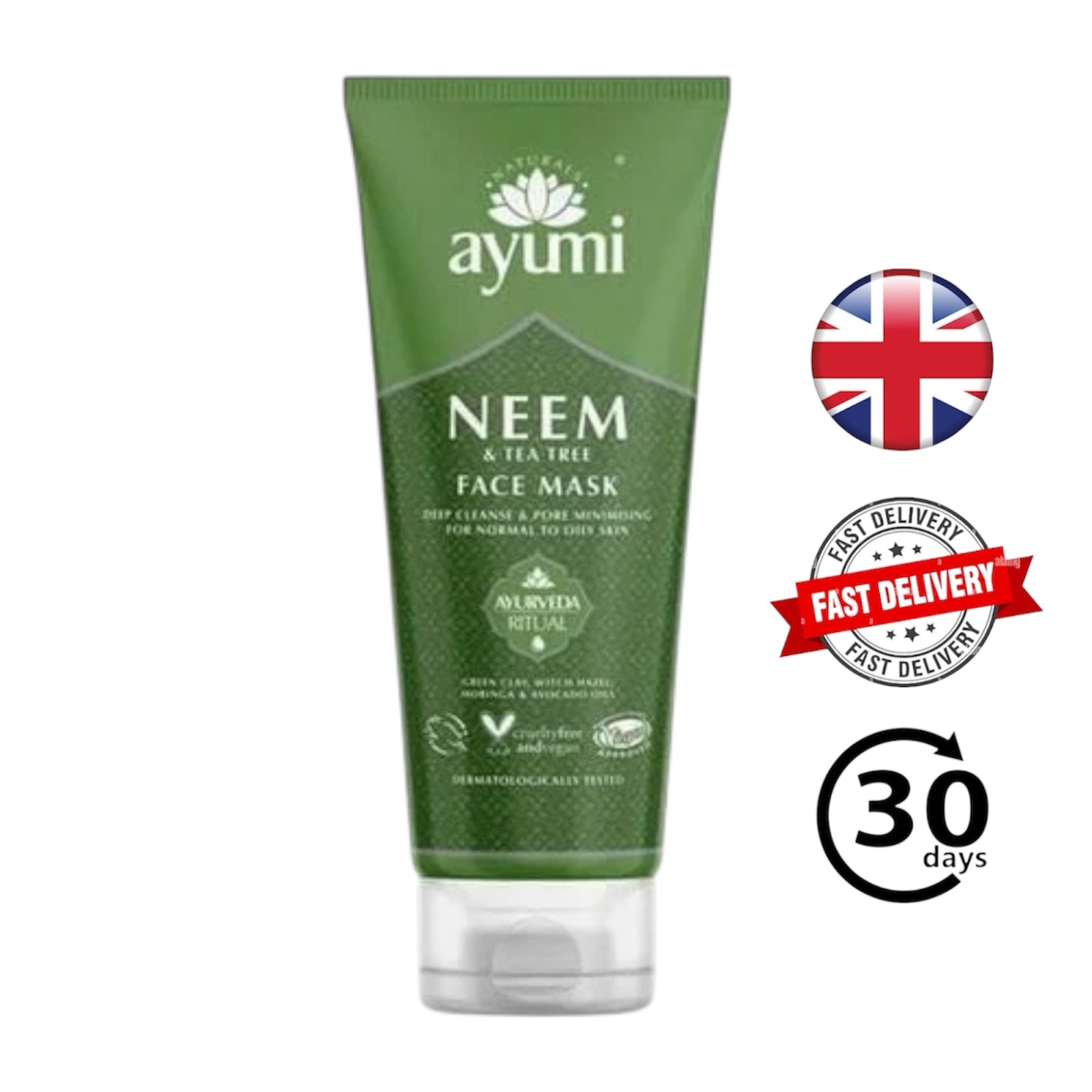 Ayumi Deep Cleanse Face Mask Travel Size | Green Clay + Neem + Tea Tree | 20ml