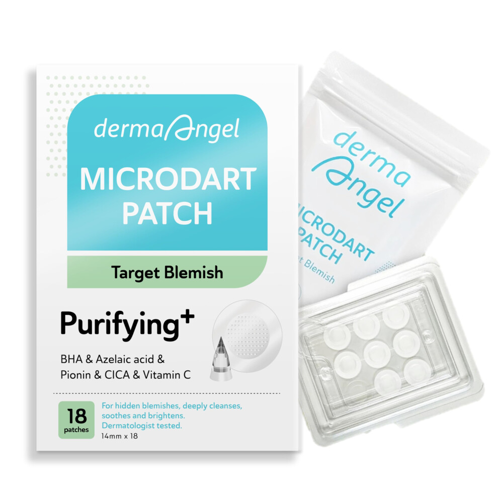 DERMA ANGEL Microdart Acne Patches for Deep Blemishes - 18 Dots - Hydrocolloid Pimple Patch with Salicylic Acid Azelaic Acid CICA & Vitamin C -
