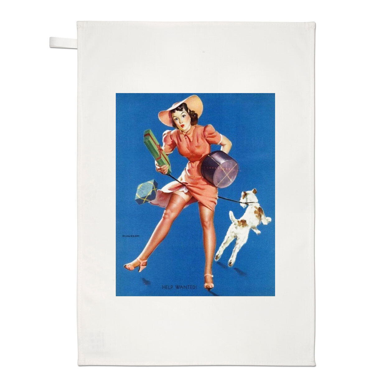Pin Up Girl Tea Towel Help Wanted Gil Elvgren Sexy Vintage Poster Dog