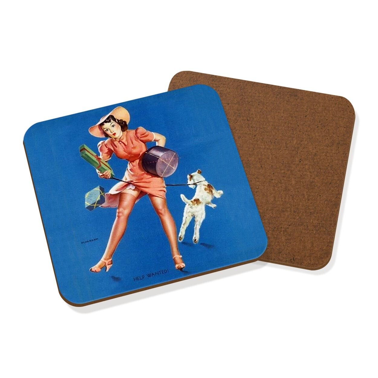 Pin Up Girl Coaster Drinks Mat Help Wanted Gil Elvgren Sexy Vintage Poster Dog
