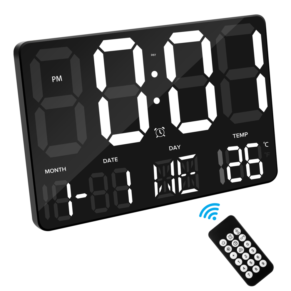 Digital Wall Clock Large Display Alarm with Wireless Remote Control LED Date and Temperature-B