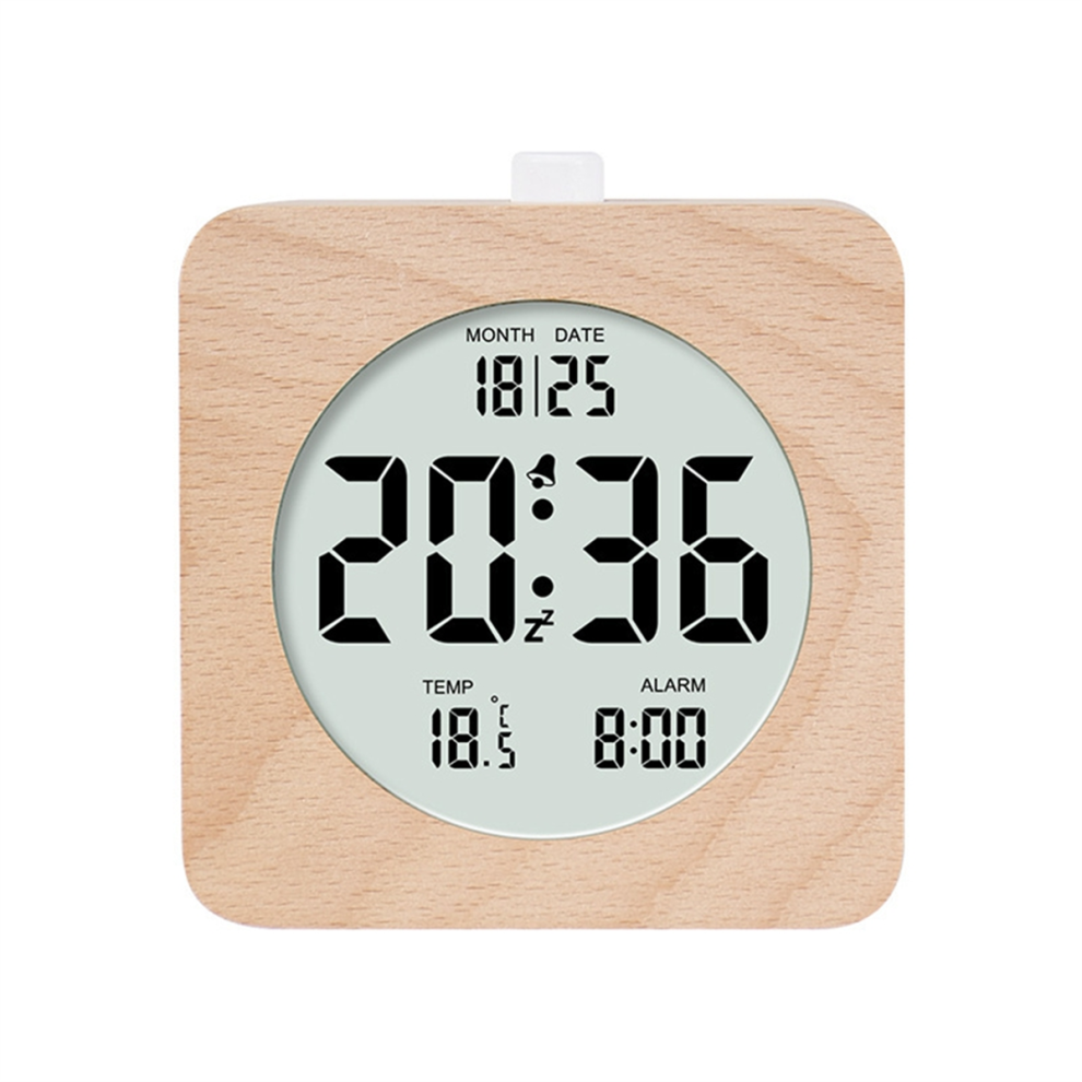 Wooden Digital Alarm Clock for Bedrooms,Wood 4In Battery Powered with Snooze and Nightlight,LCD Desk Clock,B