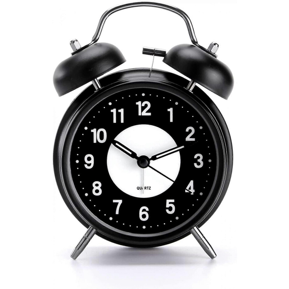 LED Twin Bell Alarm Clock Silent Operation White B For Bedroom And Office