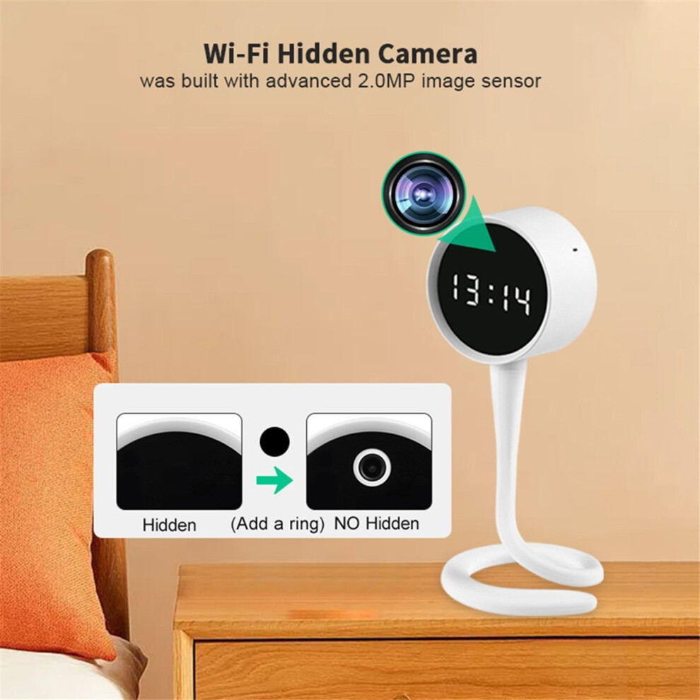 Tuya Smart Clock Alarm WiFi Battery Camera 3MP Night Vision Mobile APP Remote View and Record SD Card Memory Camera B