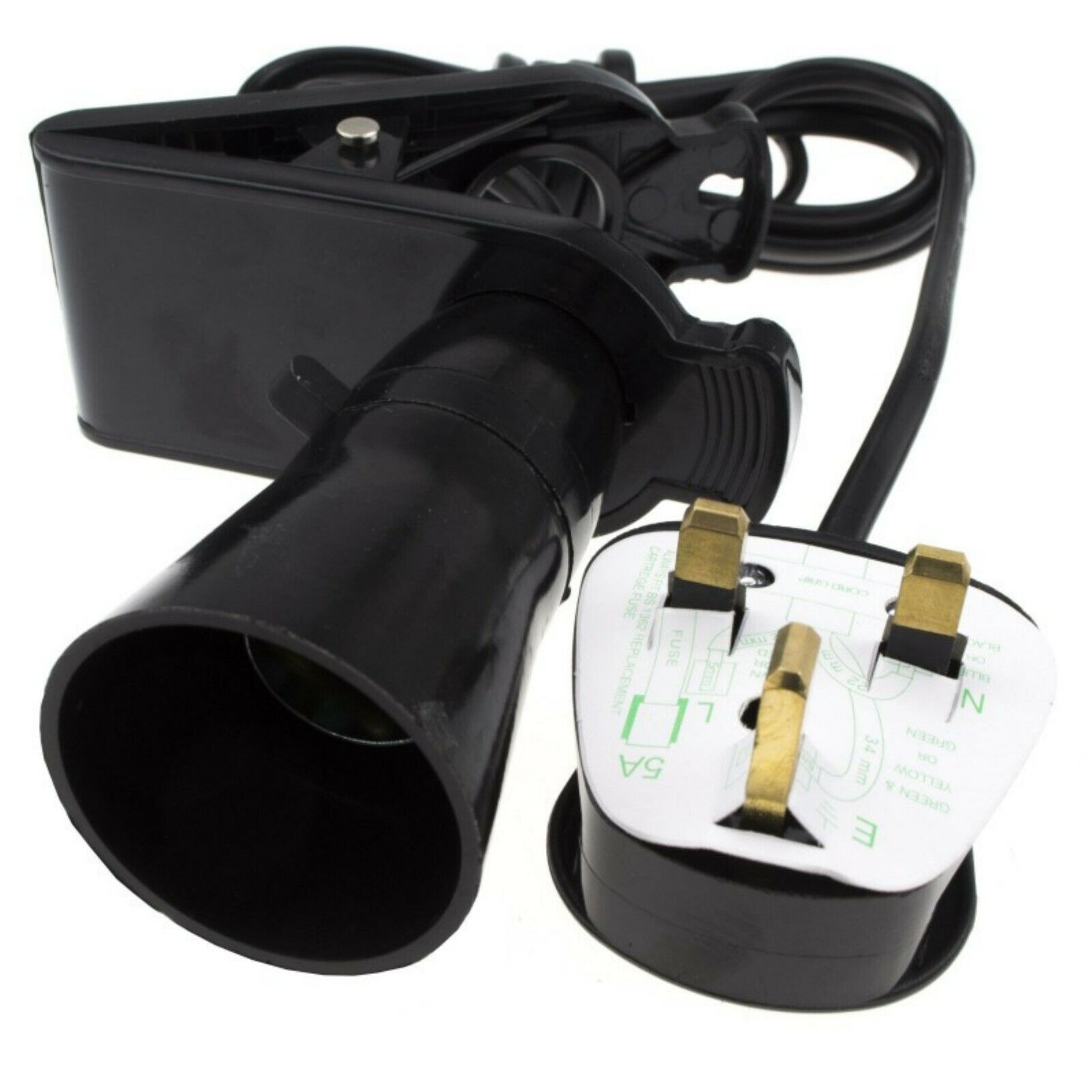 Clip Desk Lamp Holder UK Plug Light Bulb B22 Socket Base Switch 2M Cable BLACK
