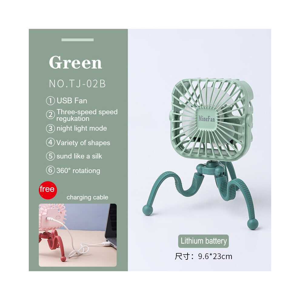 (TJ-02B green) USB Stroller Fan Portable Desk Handheld Baby Bed Car Seat Fan 500mAh Rechargeable