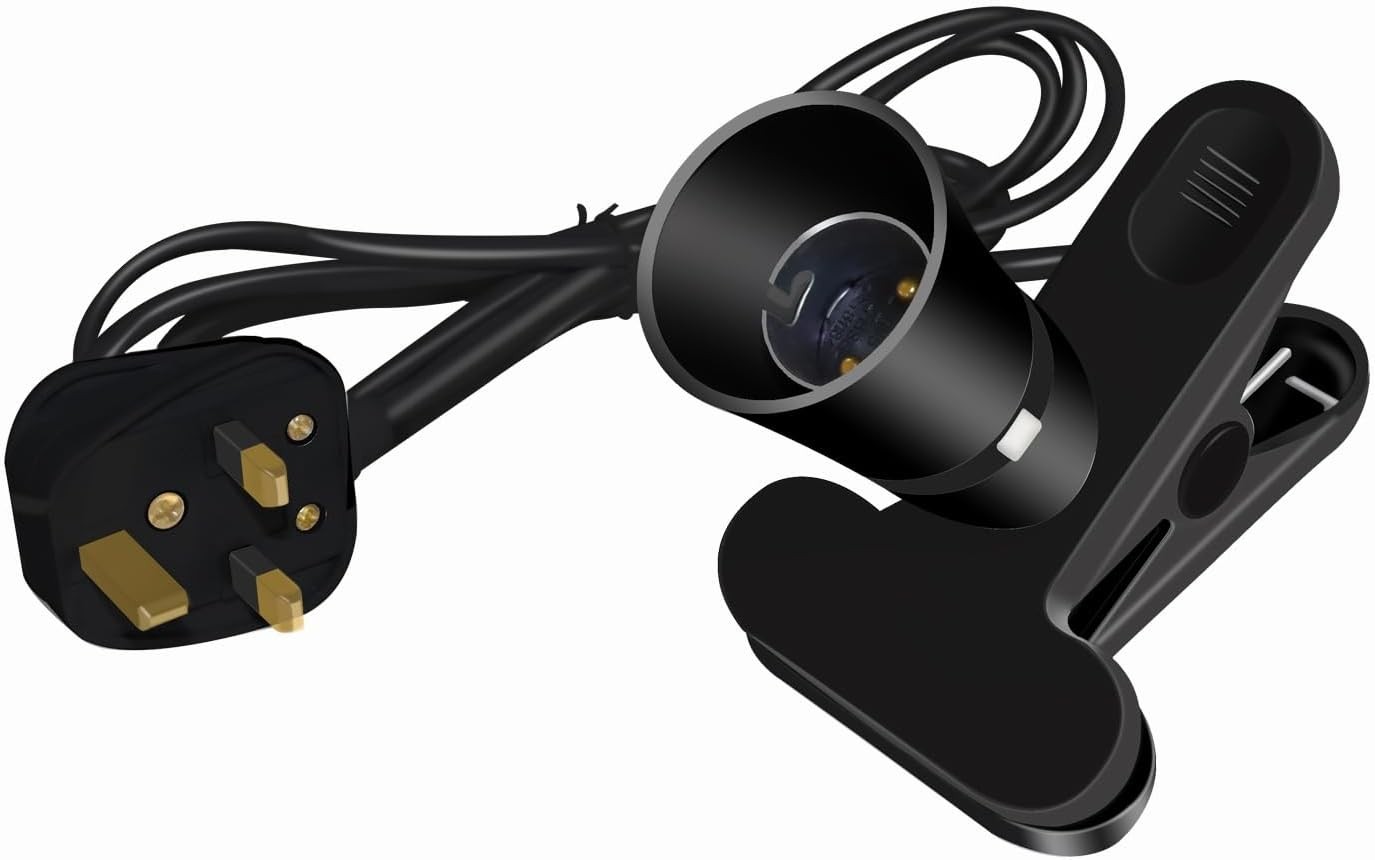 Clip Desk Lamp Holder B22, BC Bayonet Bulb Holder Clip on Light UK Plug 2M Cabl