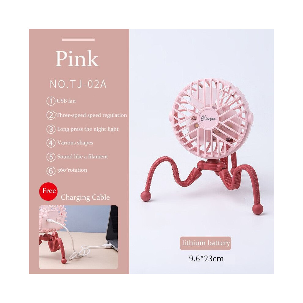 (PinkB, Lamp) 500mAh Stroller Fan Personal Portable Desk Handheld Baby Bed Car Seat Fan