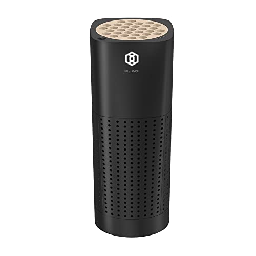 IMUNSEN M-003B Car Air Purifier with Cypress Wood, 4-Stage Filtration, H13 True HEPA Filter, Captures Smoke, Odors, Mold, Allergens, USB Port 5V Car, Desk and Office, Made in Kroea – Black