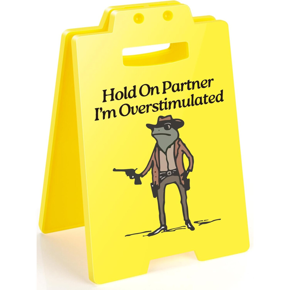Hold on Partner I'm Overstimulated Desk Sign Coworker Gift-B